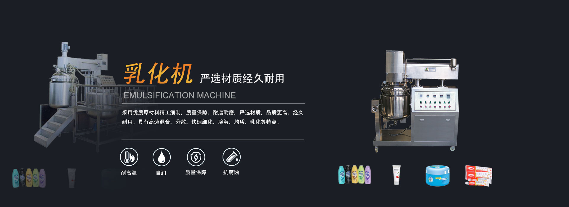 公司主營乳化機、灌裝機、混合粉碎機等產品